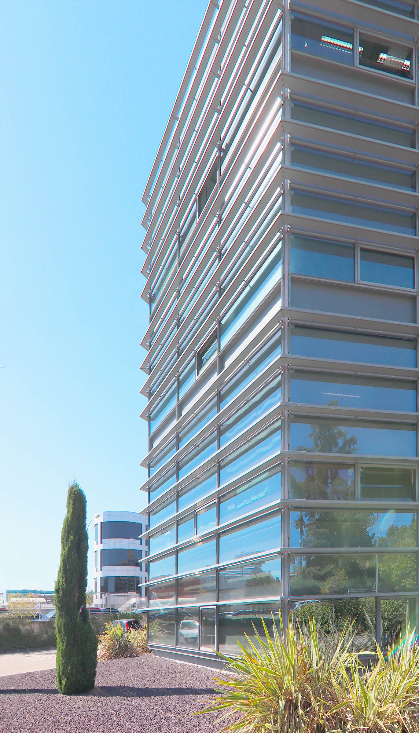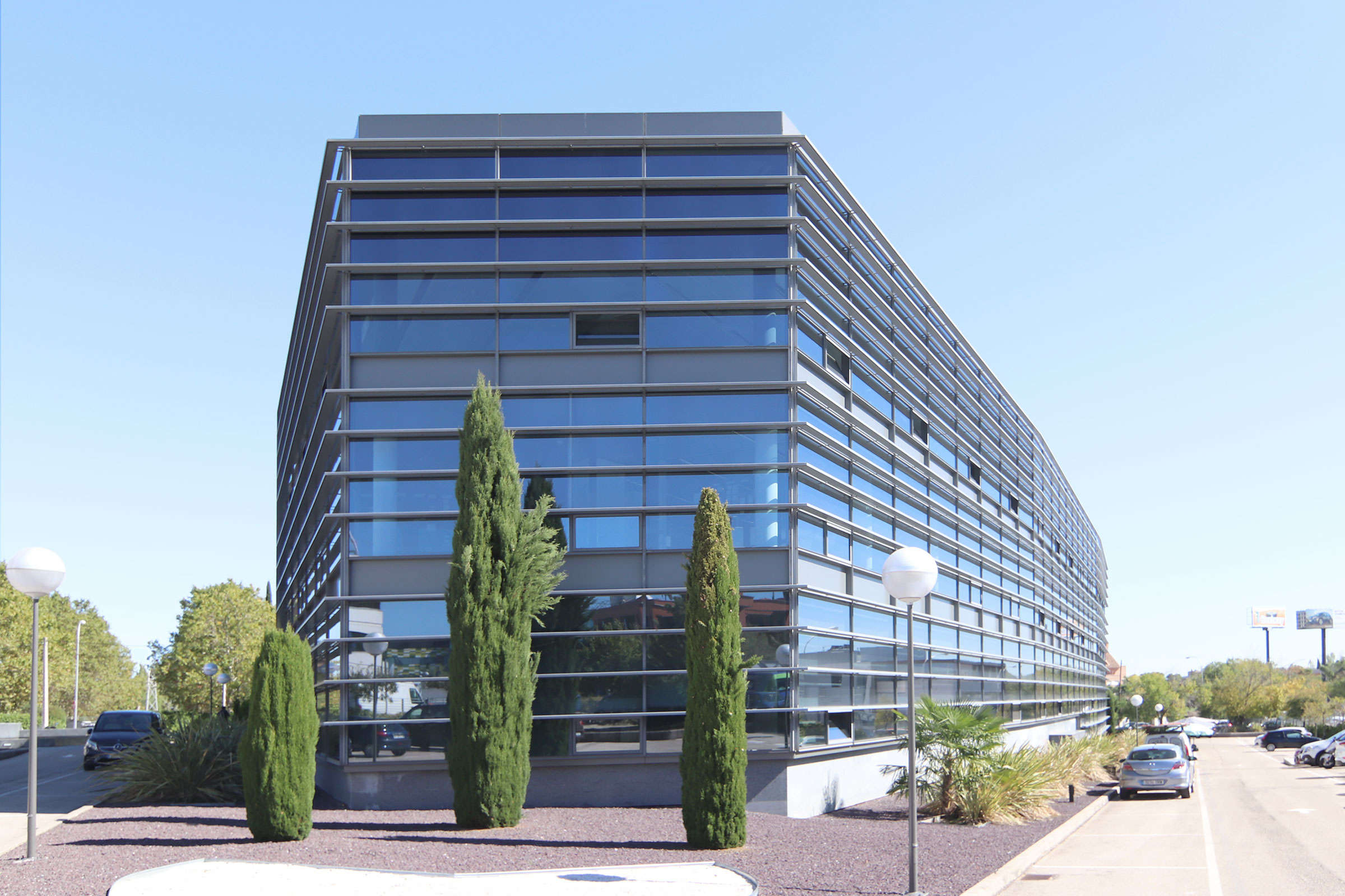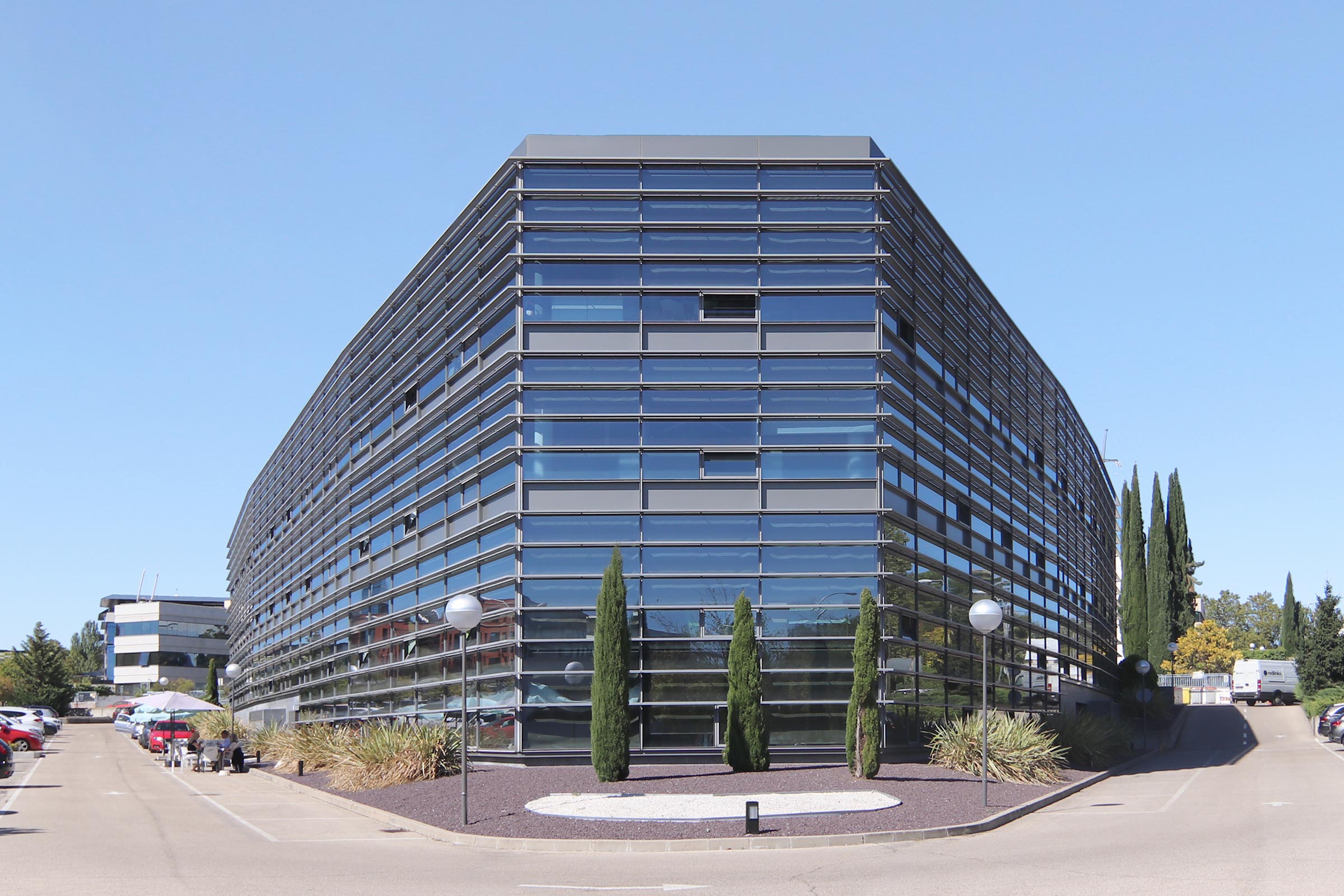 Bloque de oficinas Europa II y aparcamiento en la calle Basauri, barrio de Moncloa-Aravaca, Madrid.